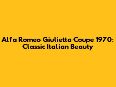 Let's dive into the world of classic Italian automobiles, guys! Specifically, we're going to explore the Alfa Romeo Giulietta Coupe 1970, a car that epitomizes style, performance, and the sheer joy of driving. This isn't just a car; it's a statement, a piece of history, and a head-turner all rolled into one sleek package. For those who appreciate the finer things in life, especially when they come with a dose of vintage charm, the Giulietta Coupe is a name that resonates deeply. It represents an era when cars were built with passion, designed with flair, and engineered for the love of the road. Forget about the mundane; this is about embracing the extraordinary.
