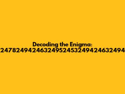 Let's dive deep into the mysterious realm of 24782494246324952453249424632494. What could this string of numbers possibly mean? Well, guys, without any context, it's pretty tough to say for sure! But that's what makes it intriguing, right? It could be anything from a serial number, a secret code, a random sequence, or even someone accidentally mashing their keyboard. The beauty of such an enigmatic string is that it invites speculation and imagination. Think about it – in a world increasingly dominated by algorithms and predictable patterns, something like this stands out. It’s a digital Rorschach test, reflecting back whatever meaning we project onto it. Maybe it's a timestamp representing a significant moment in history, a GPS coordinate pointing to a hidden treasure, or even an encryption key guarding top-secret information. The possibilities, however improbable, are endless. Let's not forget the human element. Numbers, after all, are a human construct. They're used to quantify, categorize, and make sense of the world around us. So, even a seemingly random string like this could hold personal significance for someone out there. Perhaps it’s a birthday, an anniversary, or a combination of lucky numbers. It could be a reminder of a past event, a code for a game, or something entirely personal and private. In the age of data overload, where we're constantly bombarded with information, these numerical sequences can easily become lost in the noise. But sometimes, it’s these very sequences that hold the most meaning, even if only to a select few. They serve as a reminder that behind every number, there's a story, a context, and a human connection waiting to be discovered. So, while the true meaning of 24782494246324952453249424632494 may remain a mystery for now, let's appreciate the curiosity and wonder it inspires. It's a testament to the power of the unknown and the human desire to find meaning in everything we encounter.