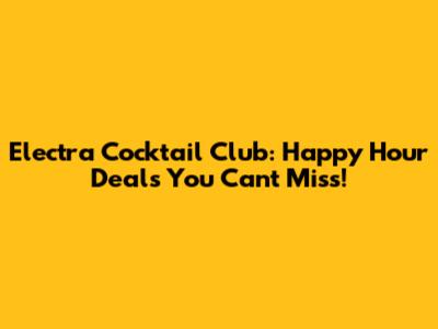 Hey guys! Are you looking for the ultimate happy hour experience? Look no further than the Electra Cocktail Club! This place is a total game-changer when it comes to after-work drinks, weekend vibes, and everything in between. Seriously, if you haven't checked it out yet, you're missing out. Let's dive into what makes Electra Cocktail Club's happy hour so special, what kind of deals you can expect, and why it should be your next go-to spot. Trust me; you'll thank me later!
