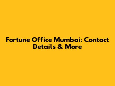 Are you looking for the Fortune Office in Mumbai and need to get in touch? Finding the right contact information can sometimes feel like navigating a maze, but don't worry, guys! This article is here to guide you through everything you need to know about reaching the Fortune Office in Mumbai. Whether you're trying to connect for business inquiries, partnerships, or any other important matter, having the correct phone number and contact details is essential. In the following sections, we'll provide you with the most accurate information available, along with helpful tips to ensure your communication is smooth and effective. So, let’s dive in and make sure you have all the details you need right at your fingertips!