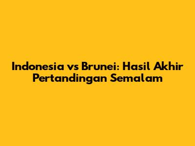 So, what happened when Indonesia faced off against Brunei? What was the final score, and who were the key players that made a difference? These are the questions on everyone's minds. When we talk about football, it’s not just about the final score; it’s about the journey, the strategy, and the passion that fuels every tackle, pass, and shot. In this match, Indonesia aimed to showcase their dominance and tactical prowess. From the kickoff, the Indonesian squad displayed high energy, pressing forward and testing Brunei's defense early on. The midfield orchestrated fluid movements, creating opportunities and controlling the tempo of the game. Each player was focused, each pass precise, and the team showed a collective determination to secure a decisive victory. Brunei, on the other hand, prepared to face a formidable opponent, set up defensively, hoping to stifle Indonesia's attacking threats. Their strategy involved compacting the defensive lines, making it difficult for Indonesia to find space in the final third. Quick transitions were key for Brunei, looking to exploit any counter-attacking opportunities to catch Indonesia off guard. Every player knew their role, and the team worked tirelessly to execute the game plan. The atmosphere was electric as the match began. Fans filled the stadium, their cheers and chants creating an environment that amplified the tension and excitement. Both teams felt the weight of expectations, understanding the importance of this match not only for themselves but for their nation. As the game progressed, Indonesia’s relentless attacks paid off, with goals coming from both set-piece situations and open play. The forwards showed clinical finishing, while the midfielders provided crucial assists. Brunei, despite their defensive efforts, found it challenging to contain Indonesia’s attacking waves but never lost their determination. Every tackle was fierce, every run was purposeful, and the fight for every ball was intense. The goalkeepers on both ends were tested, making important saves that kept the scoreline respectable. In the end, the final whistle blew, sealing Indonesia's victory and marking another chapter in their footballing journey. The players embraced, acknowledging their hard work and celebrating the win with their fans. The match highlighted the contrast in styles and strategies, demonstrating the complex beauty of football. It was a game of skill, strategy, and sheer determination, leaving fans with plenty to talk about and look forward to.