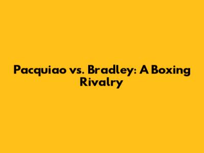 Pacquiao Vs. Bradley: A Boxing Rivalry
