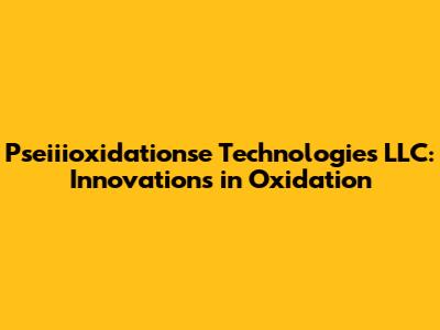 Pseiiioxidationse Technologies LLC: Innovations In Oxidation
