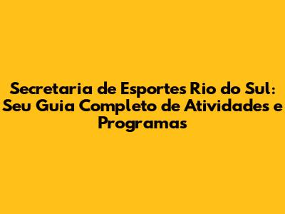 O Que é a Secretaria de Esportes de Rio do Sul?